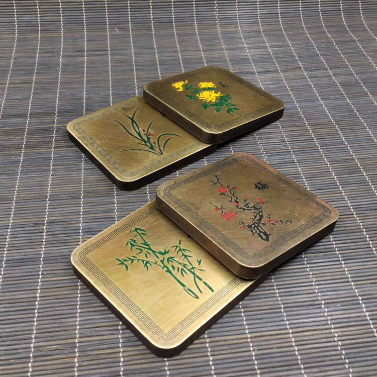 Wenchang Pavilion antique pure copper paperweight ruler square plum orchid bamboo chrysanthemum town ruler four treasures desktop ornaments