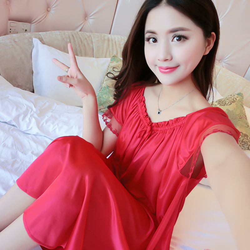Nightdress women's Xia Bingsi thin section sexy plus fat plus fat mm long version sleeveless pajamas ladies casual home wear