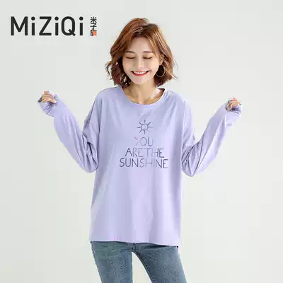 Yonezi flag inner tie bottoming shirt women's spring and autumn 2021 new white long-sleeved letter T-shirt women's loose Korean top