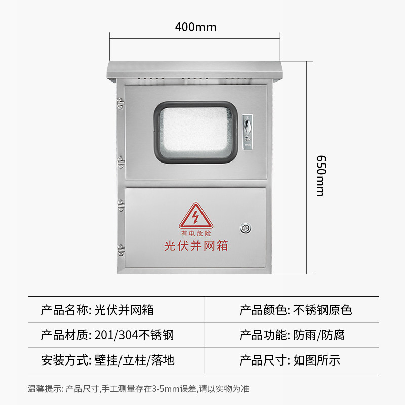 Outdoor stainless steel photovoltaic grid-connected distribution box three-phase single meter box metering box rainproof AC control box