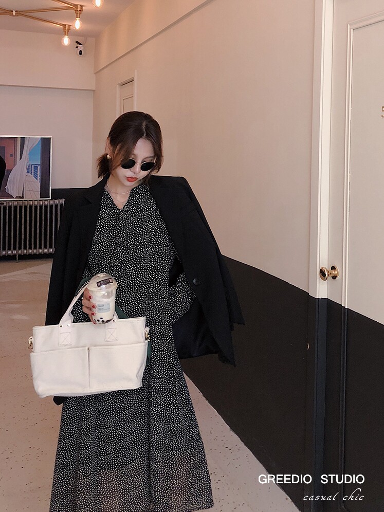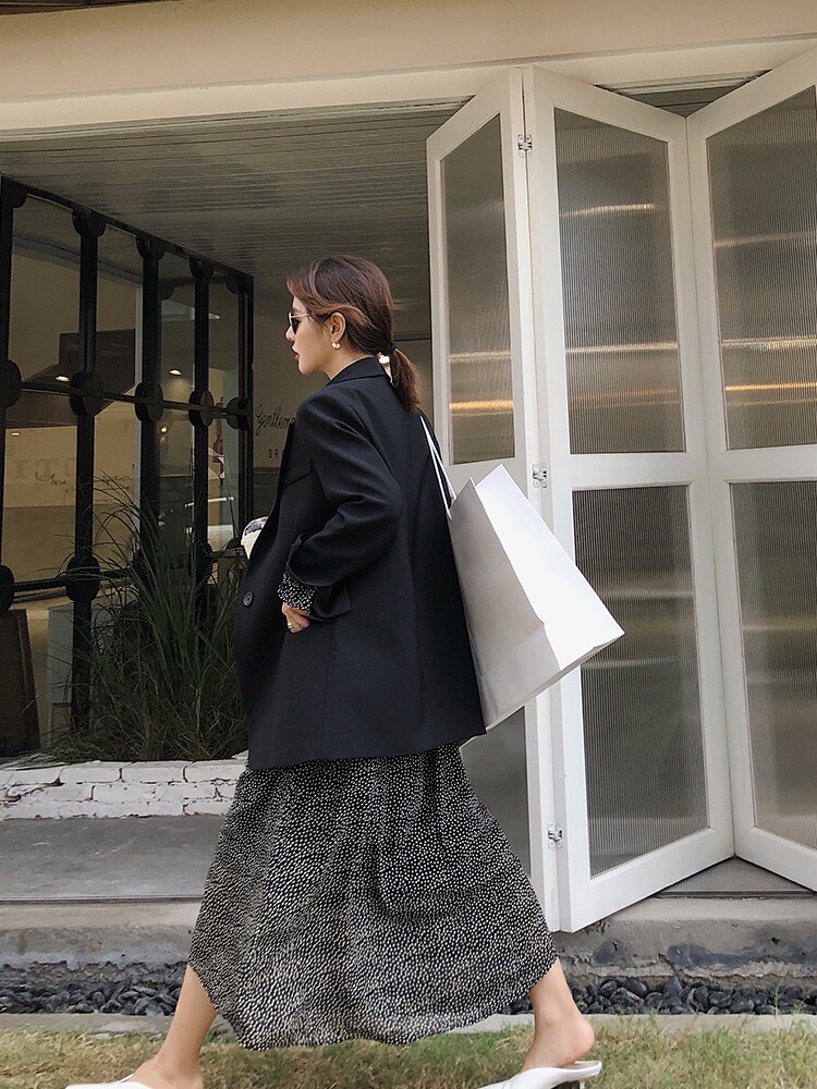 Suit jacket woman small suit girl chic pure color port taste long sleeves casual workout slim fit Korean version Western-style clothes