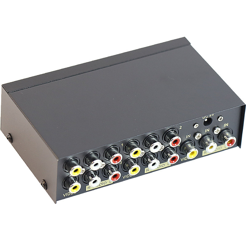 Audio and video AV yellow, white and red distributor 1 in and 4 out of the set-top box monitoring connection to the TV with multi-screen display on the same screen