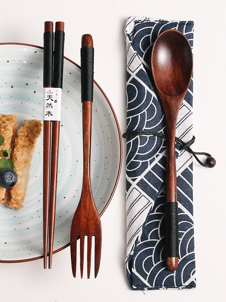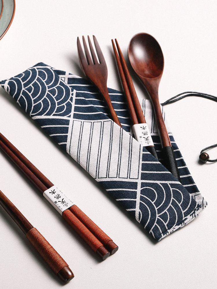 Wooden chopsticks spoon suit for travel on travel and eco-friendly portable tableware student portable day-style cutlery bag