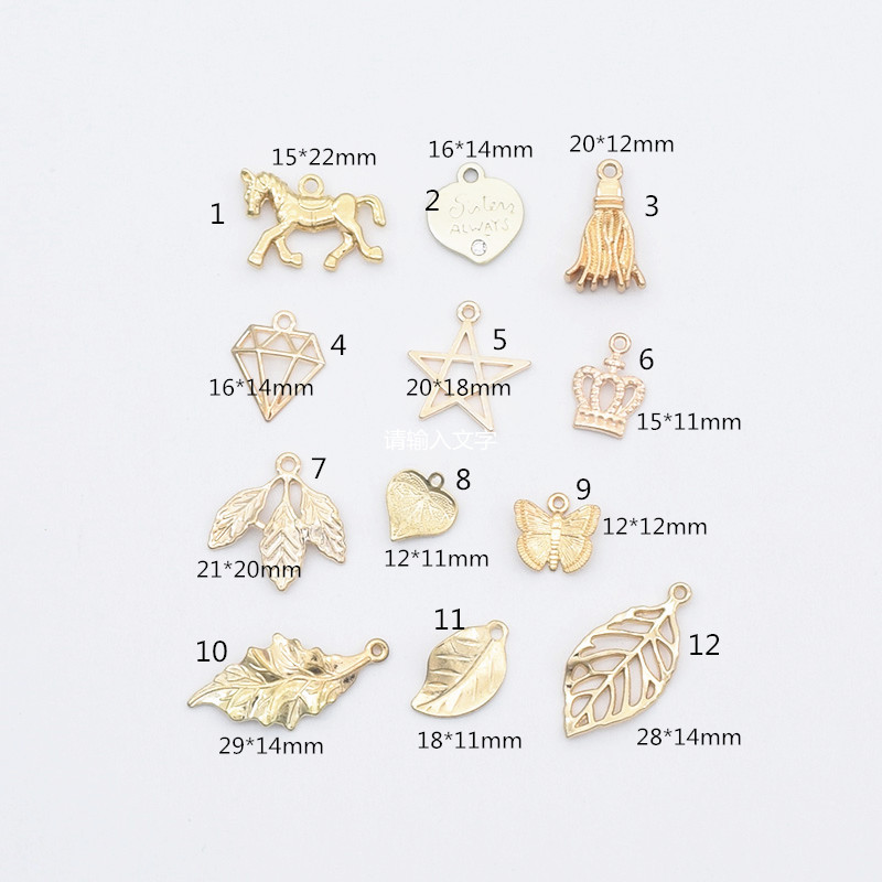 No. 1 Unicorn No. 2 Diamond Heart No. 3 Three-dimensional Small Tassel No. 4 Hollow Diamond No. 5 Hollow Pentagram No. 6 Crown No. 7 Three Leaves No. 8 Small Peach Heart Leaf No. 9 Butterfly No. 10 Long Leaf 11