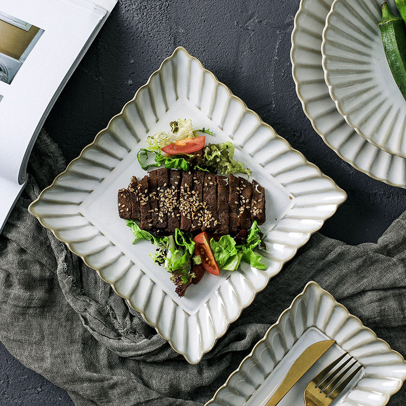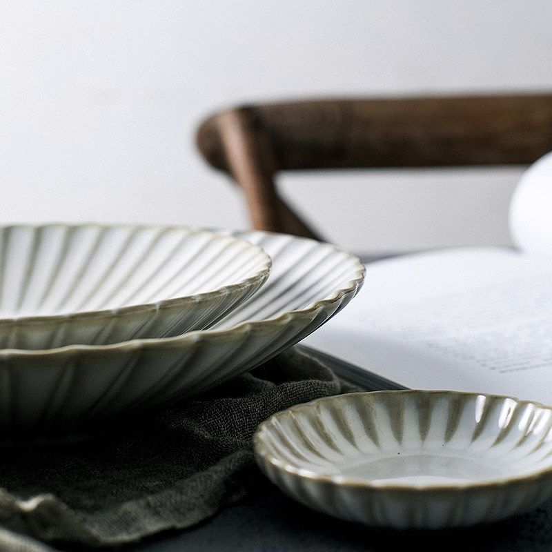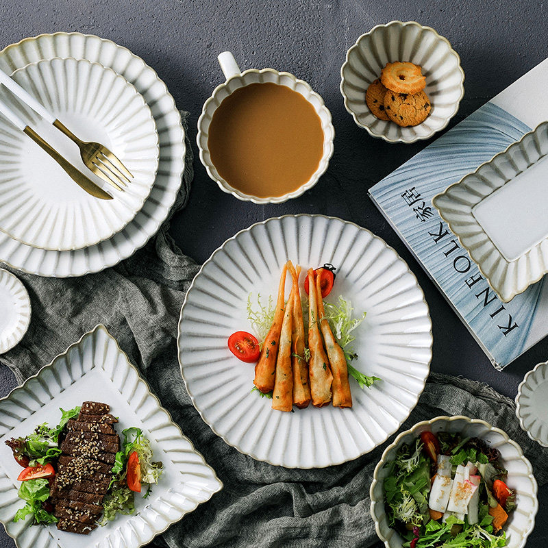 House chrysanthemum dish Japanese kiln glazed ceramic tableware creative plate western food plate home plate coffee cup fish plate