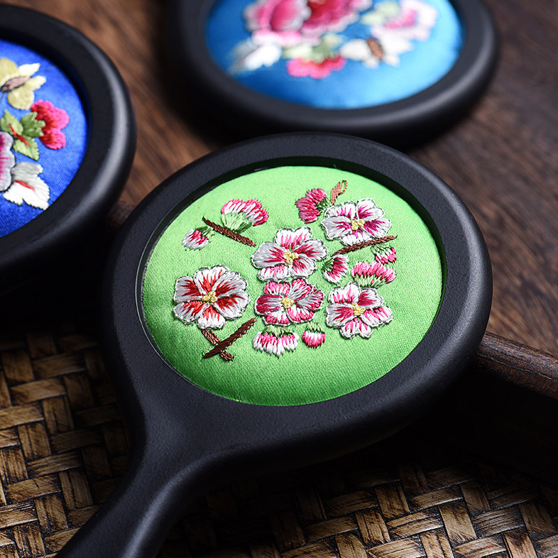 China Wind Chengdu Features Handmade Embroidery Makeup Mirror Lady to go abroad to send girlfriend Valentine's Day Shu embroidery craft gift