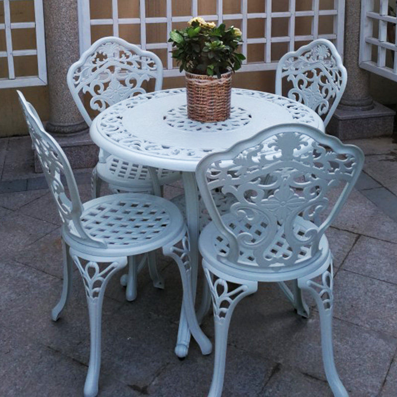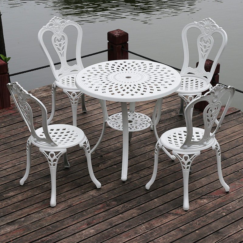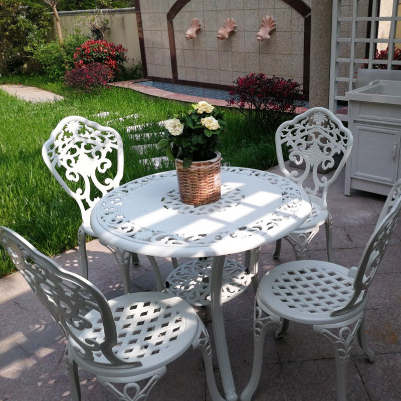 Outdoor cast aluminum tables and chairs European casual outdoor garden open balcony table and chair Five pieces white courtyard table and chair