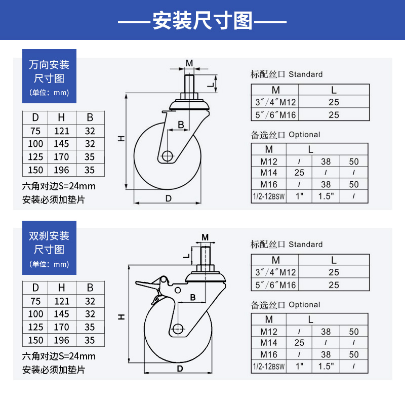 3 inch screw universal 3 inch screw brake 4 inch screw universal 4 inch screw brake 5 inch screw universal 5 inch screw brake 6 inch screw universal 6 inch screw brake