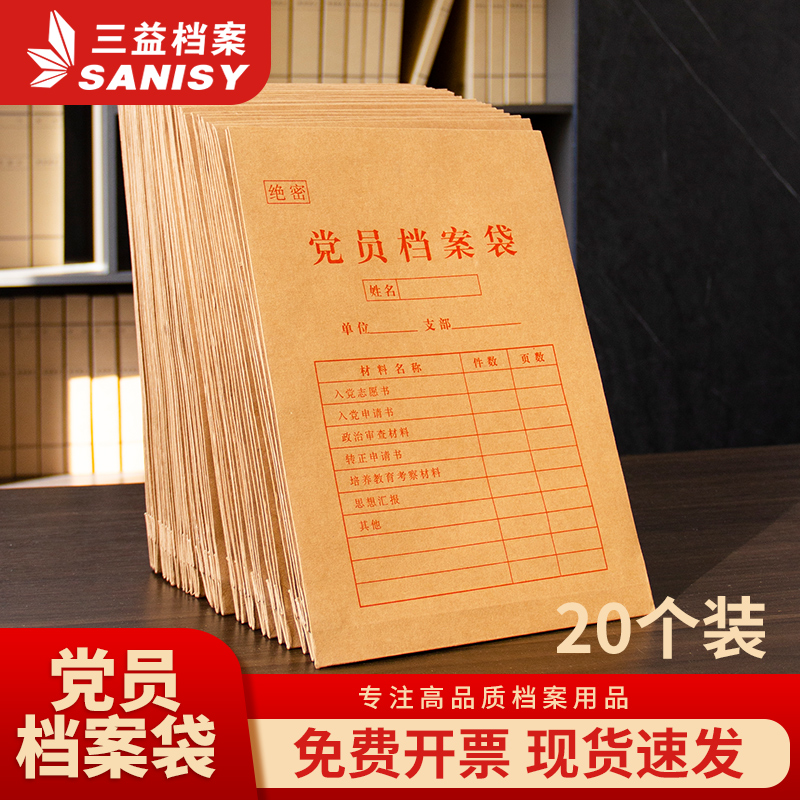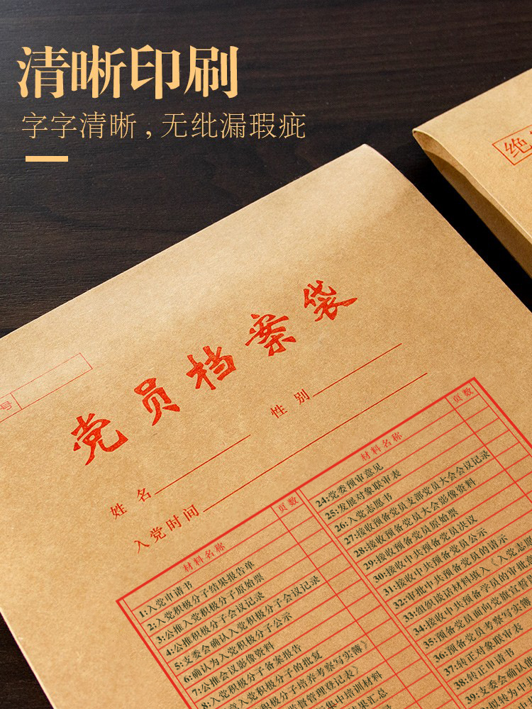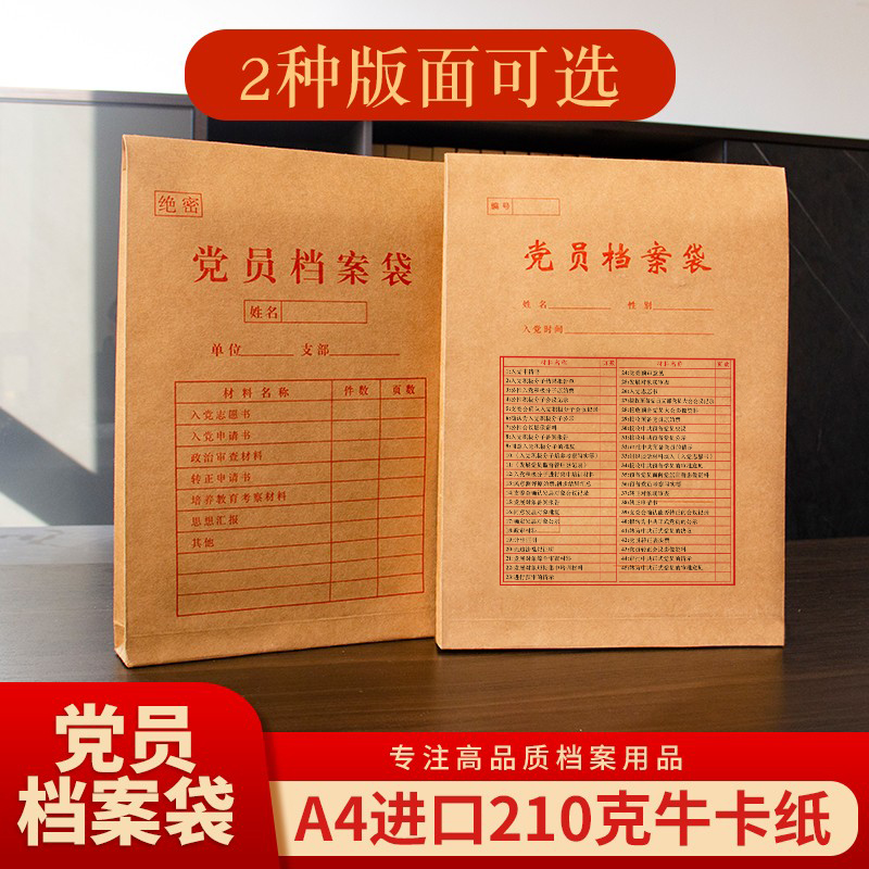 50 A4 party member file bags 210g large-capacity thickened imported kraft paper development preparation party member information bag member file file bag Communist Youth League member political review material bag party member bag customization