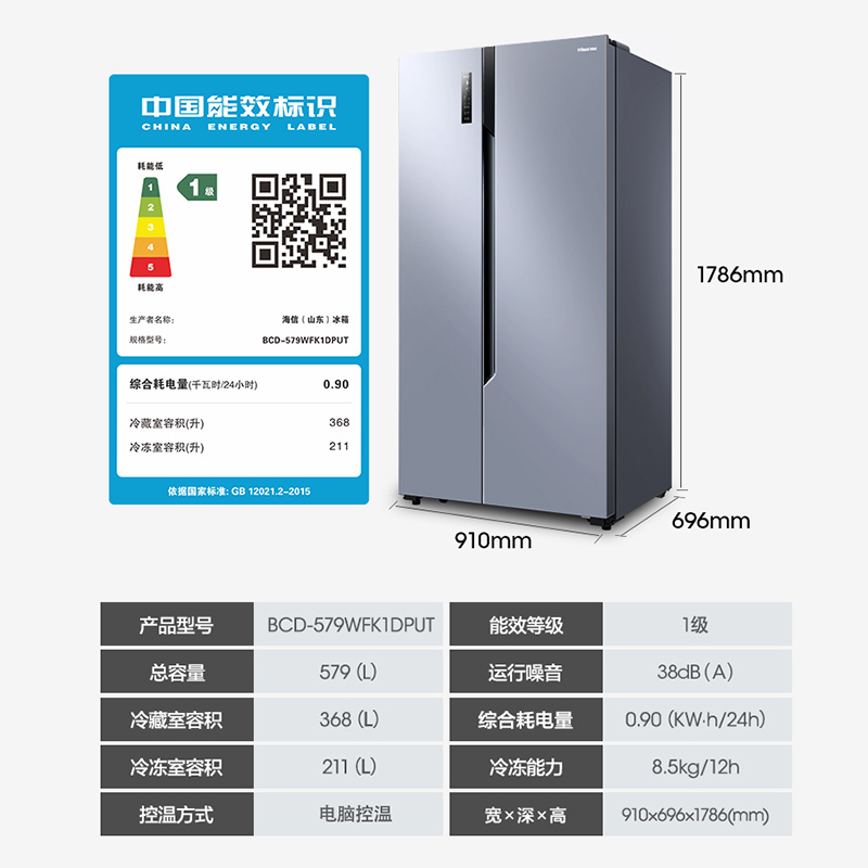 Haixin 579L pair door double door home air-cooled frost-free intelligent frequency conversion primary energy saving embedded large fridge