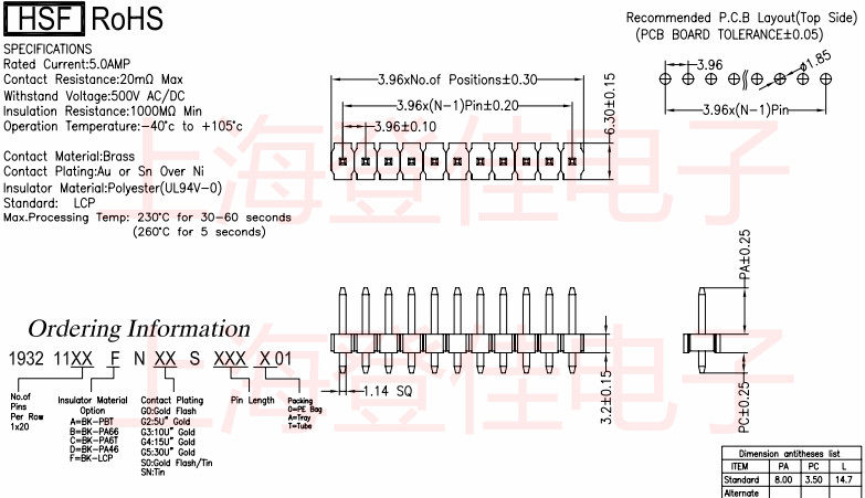 Socket connector plate for plate single row pin 3 96MM pitch straight insertion 180 degrees plastic height H3 2MM small black clamp male head 1 ~ 20P