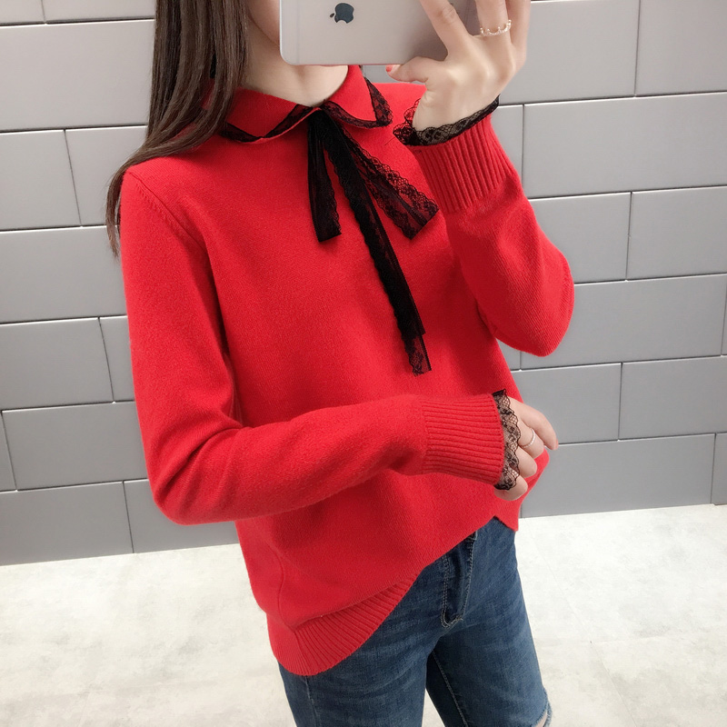 Autumn clothing 2022 new fake two blouses ladies sweaters Long sleeves loose Korean version of undershirt cardiovert jacket winter