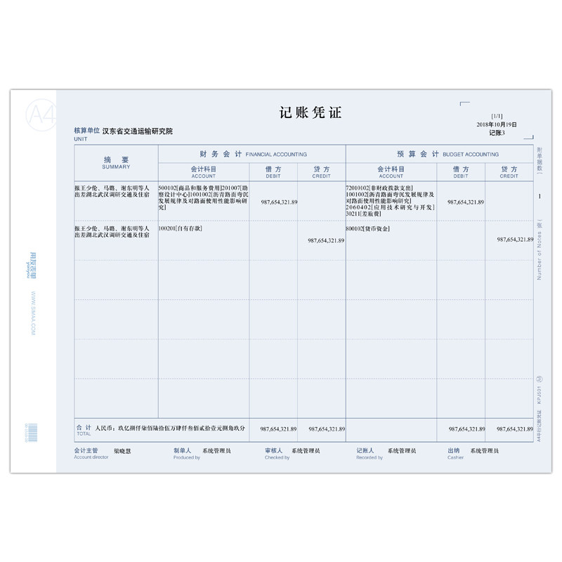 With Friend A4 Parallel Billing Voucher Paper Photocopy Paper New Version Financial Voucher Paper New Government Accounting System 2019 Use Friendly Government Special Laser Print A4 Size Horizontal version Sima Form
