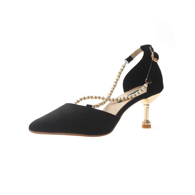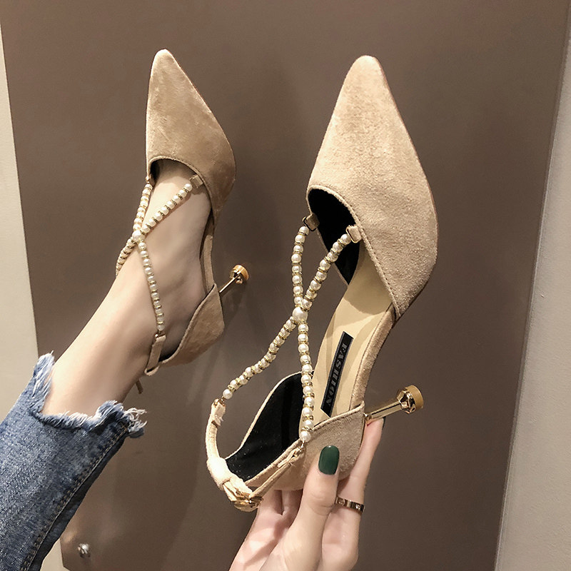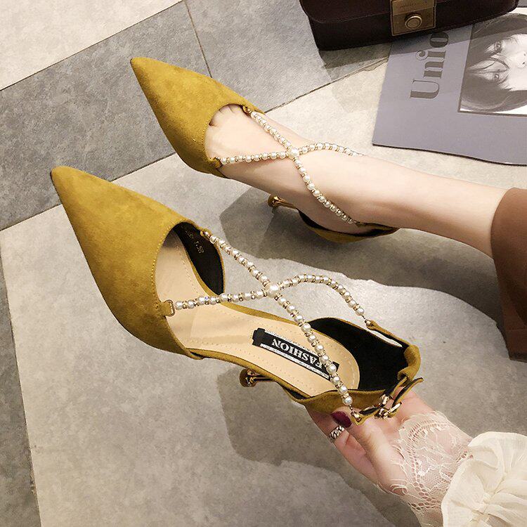 2022 spring new high heels thin heel pointed bag shoes Joker temperament women's shoes pearl buckle hollow women's sandals