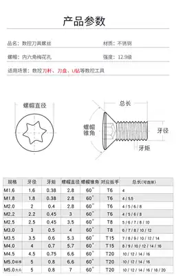 Tool bar screw 12 9 level plum blossom screw CNC milling blade cutter head screw M2M2 5M3M3 5M4M5 screw