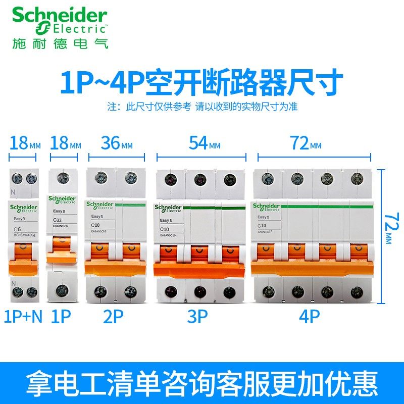 Schneider air switch Household small circuit breaker E9 series 1P16A2P3P single-chip vacuum single-pole open