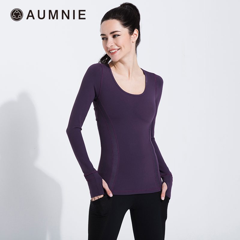 AUMNIE Aomini yoga clothes women's slim running sports fitness top U-neck swirl long-sleeved T-shirt with chest pad