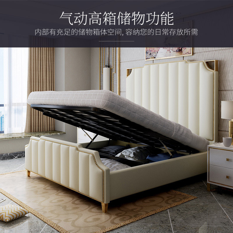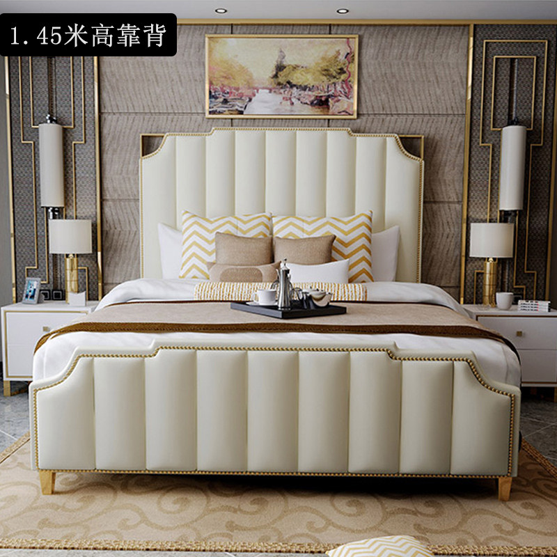 Bed (145 backrest light and luxurious titanium alloy head layer of cow leather) latex mattress bed head cabinet 2 beds (145 backrest light lavish titanium alloy head layer cow leather) bed head cabinet 2 beds (1