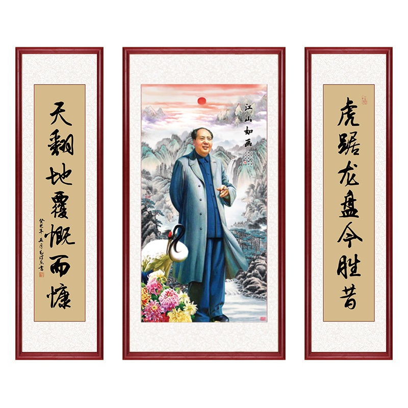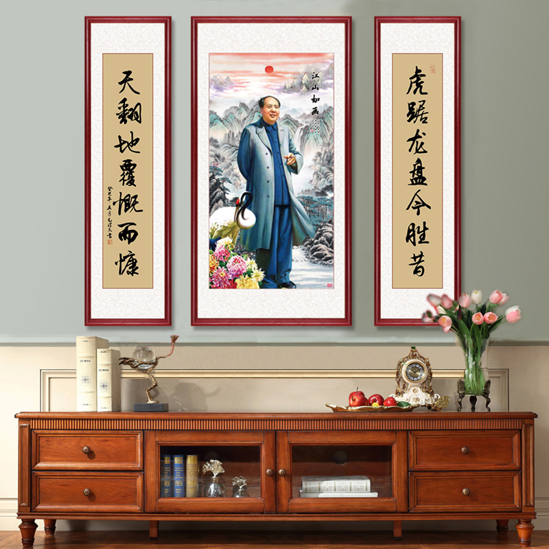 Middle Hall Painting Living Room Hanging Paintings of Mao Zedong Portrait of Rural Hall House Backwall Hanging Paintings of Great Man Chairman Mao Triple Wall Paintings