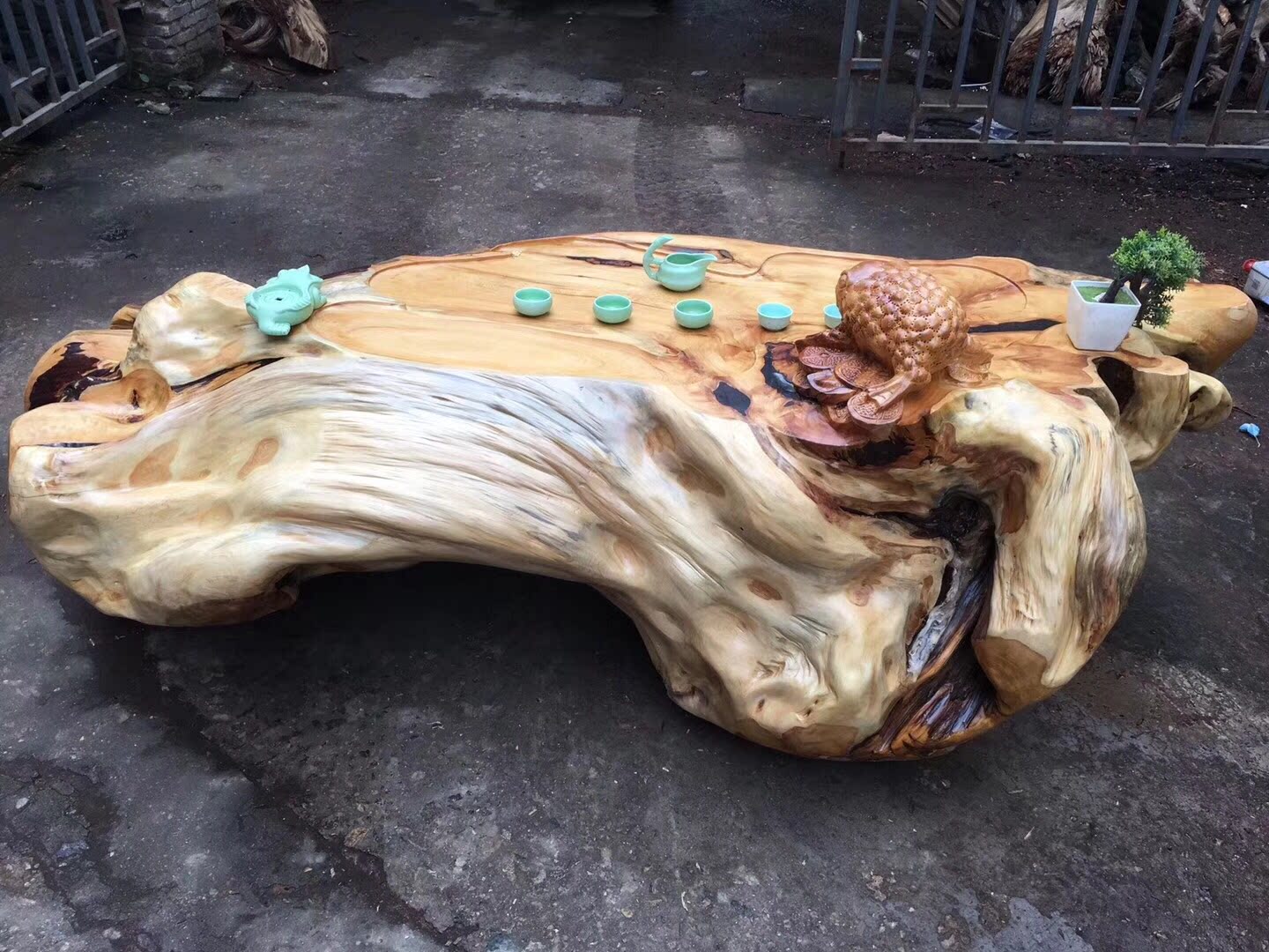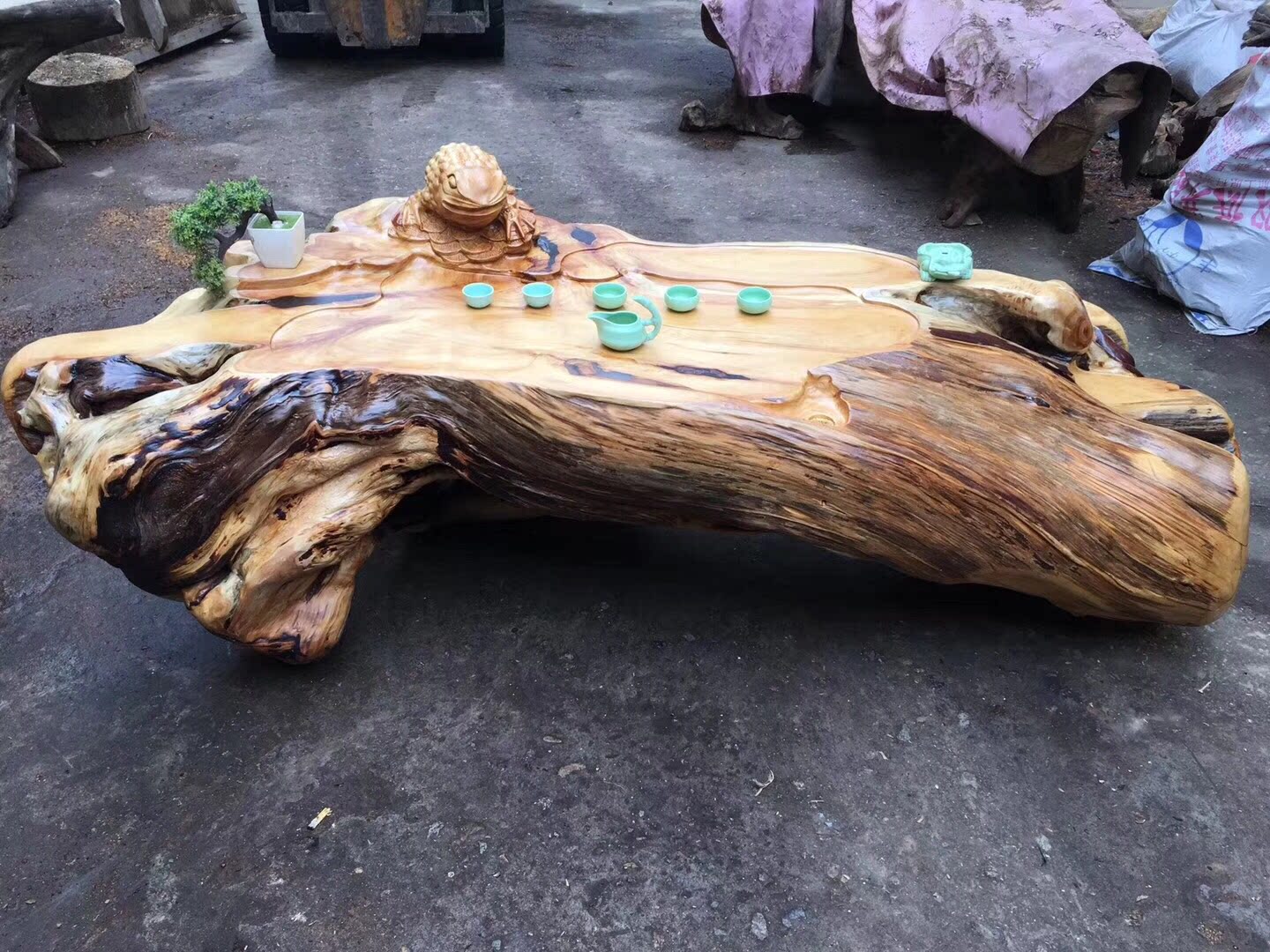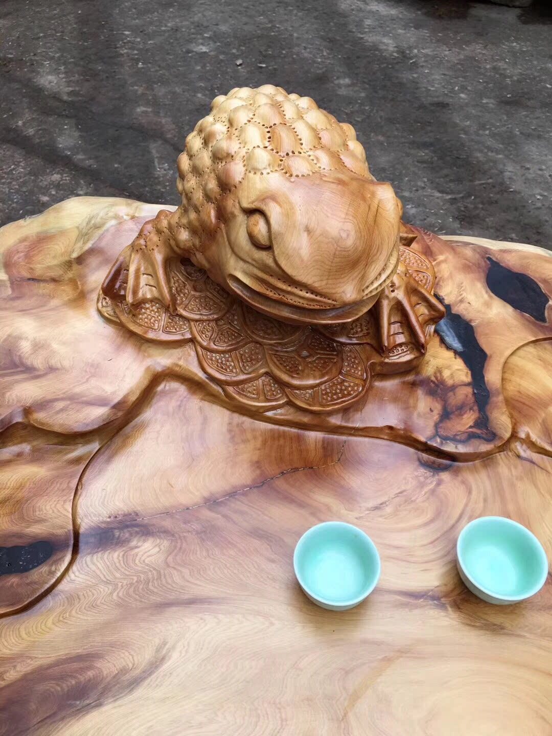 Root Carving Root Art Tea Table Golden Toad With Forcliff Cypress Double Coloring Material Golden Silk Water Ripple Without Picking Up Root Hugs Weighs 900 Kilos