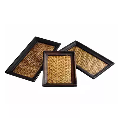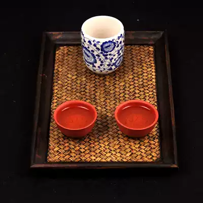 Solid wood bamboo woven tea tray Home club Retro classic non-slip tea coaster Tea room Tea ceremony utensils Dried fruit tray