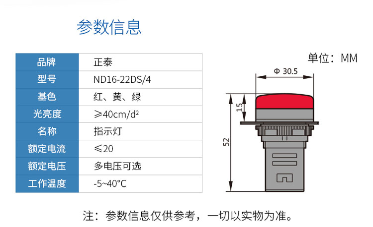 Positive Tai signal lamp AD16 ND16-22DS 2 LED resistive type 22MM aperture short type LED red green