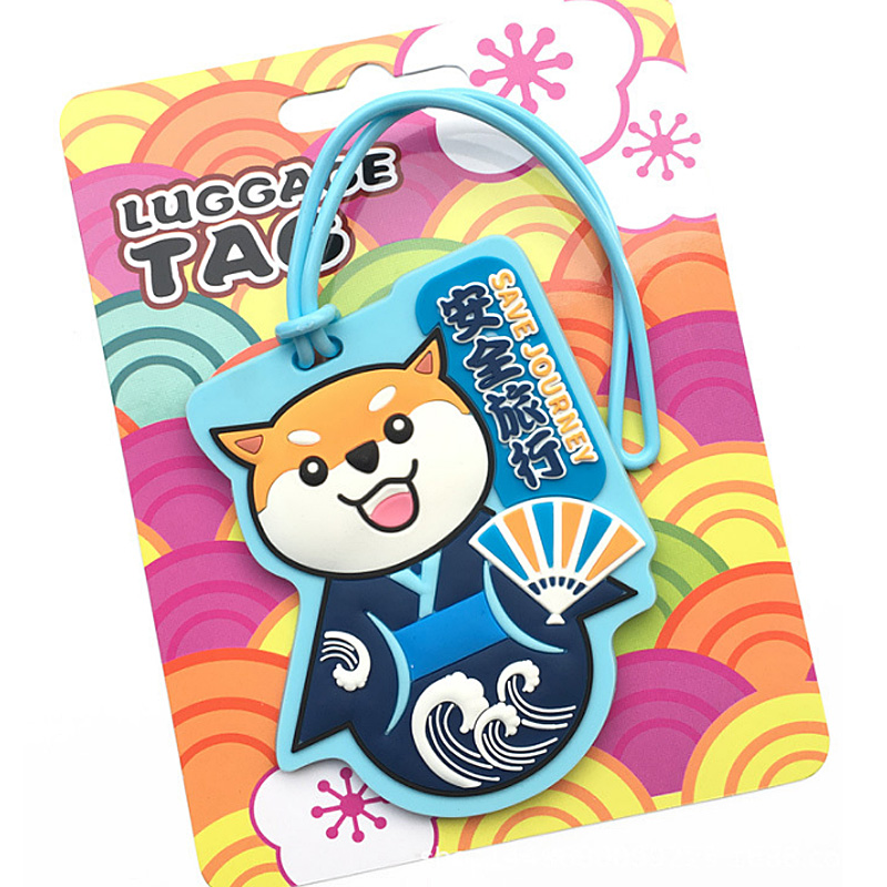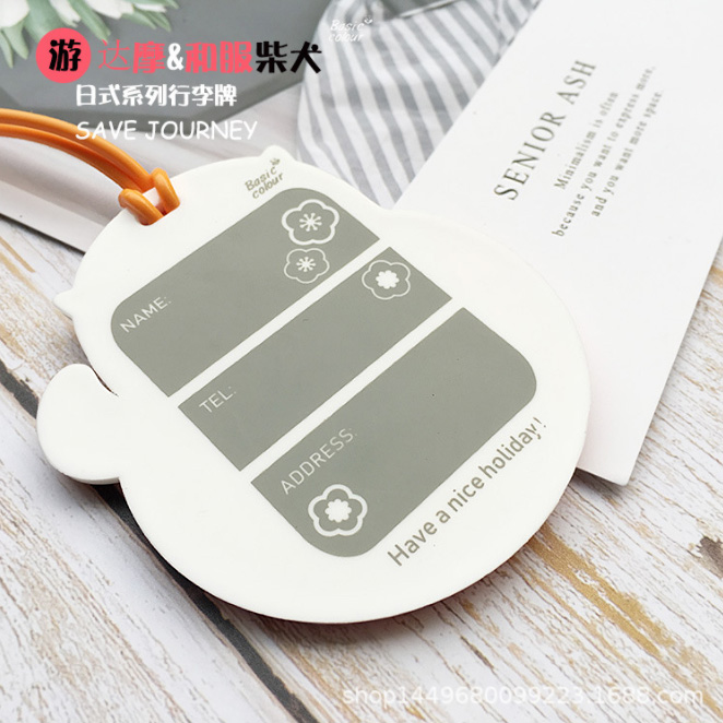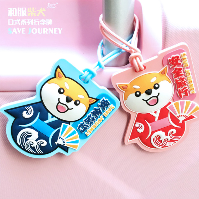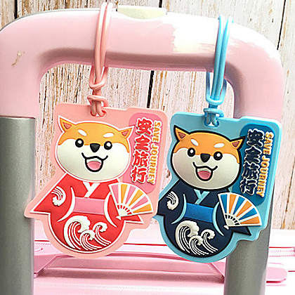 Travel portable silicone luggage tag cartoon Shiba Inu checked in to prevent loss of Japanese kimono suit boarding pass
