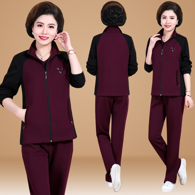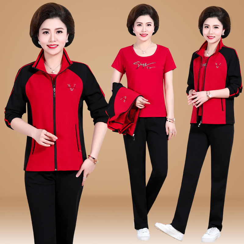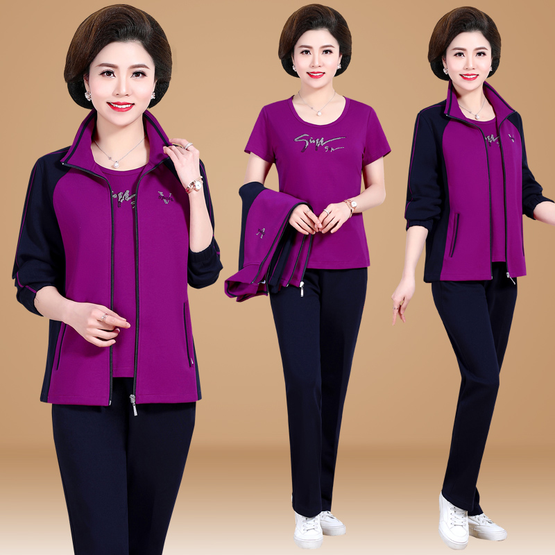 Mother sports suit three-piece set women's spring and autumn casual coat autumn middle-aged and elderly large size loose sportswear