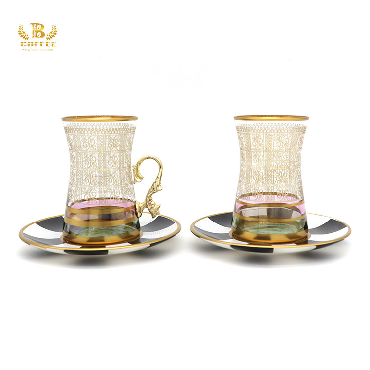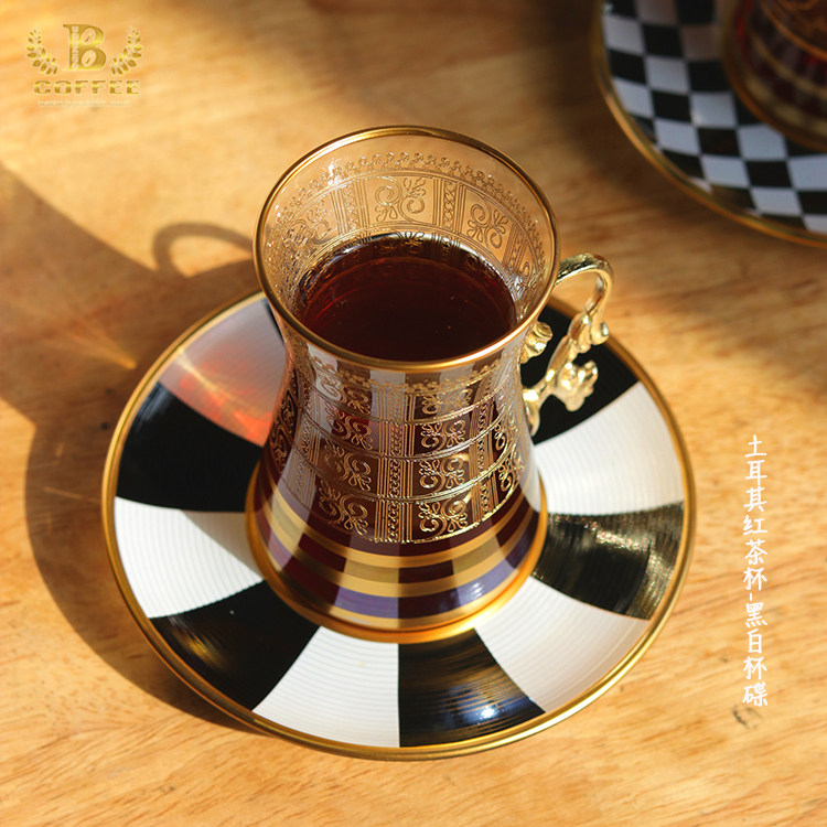 Turkish court style black tea cup black and white cup saucer home creative glass high temperature spot 160ml