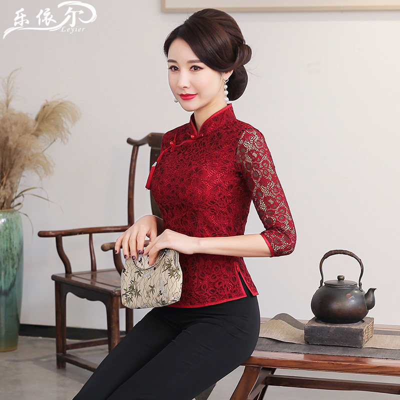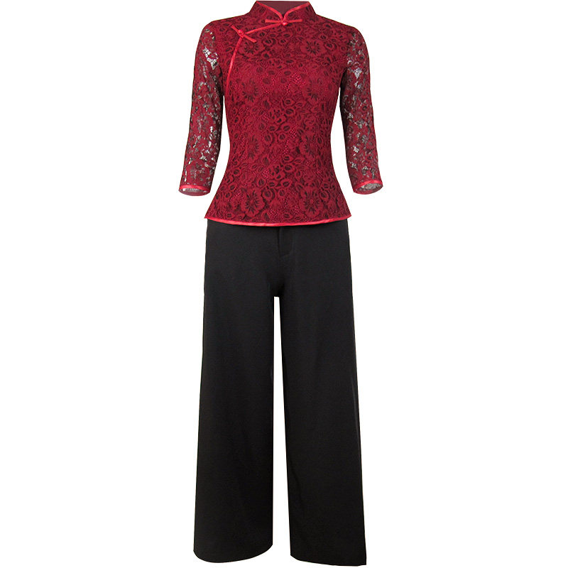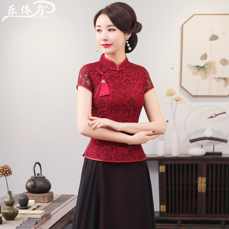 Spring and summer improved Hanfu cheongsam jacket retro Chinese style lace cheongsam Tang suit two-piece Chinese mother suit