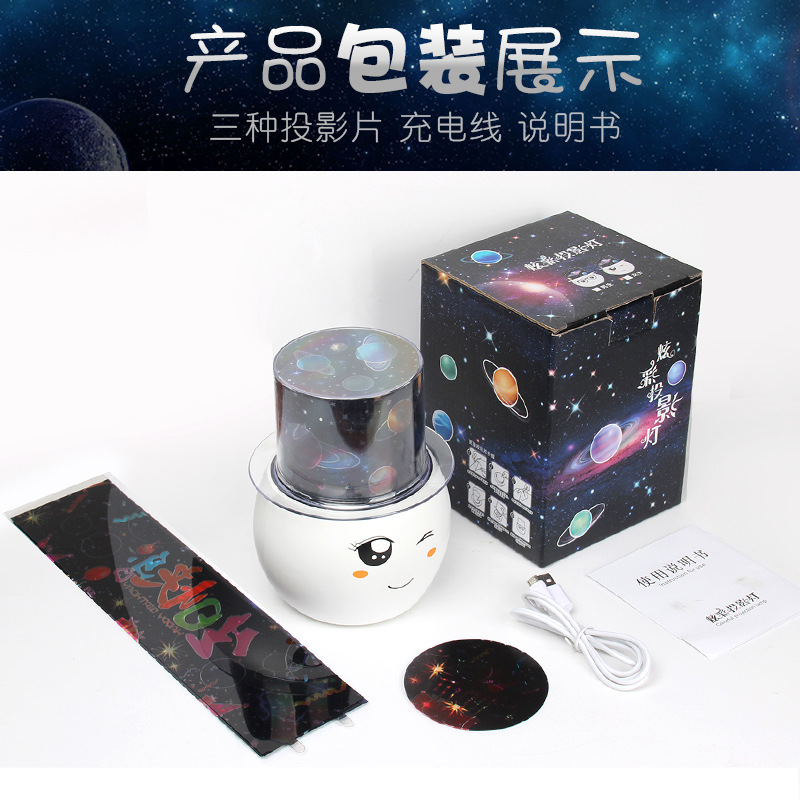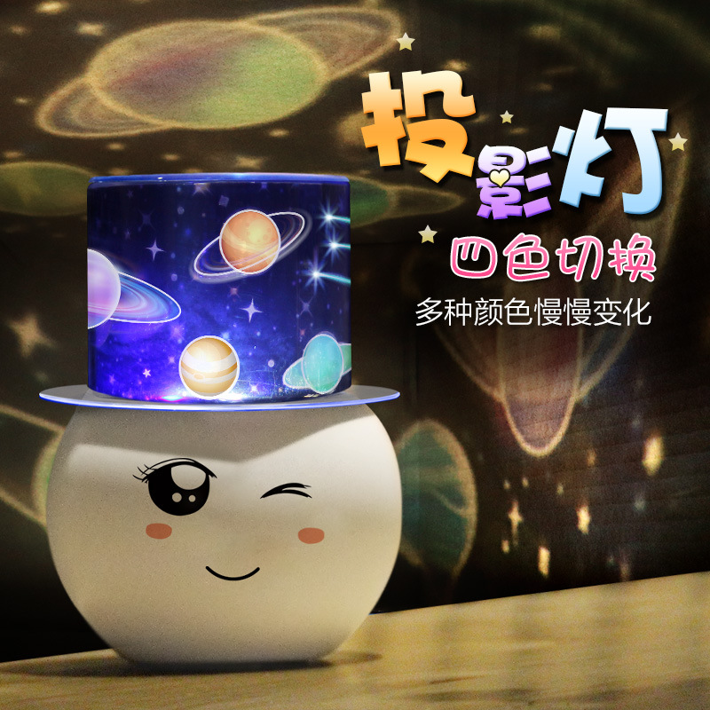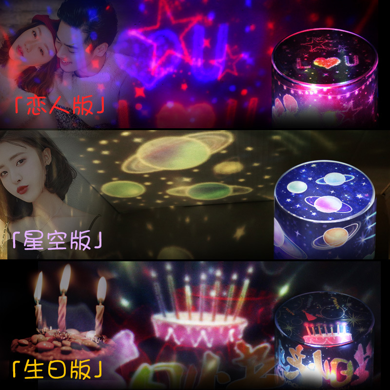 Net Red Small Night Light Gift Seven Color Rotary Discoloration Projection Lamp USB charging 360-degree rotating starry sky light