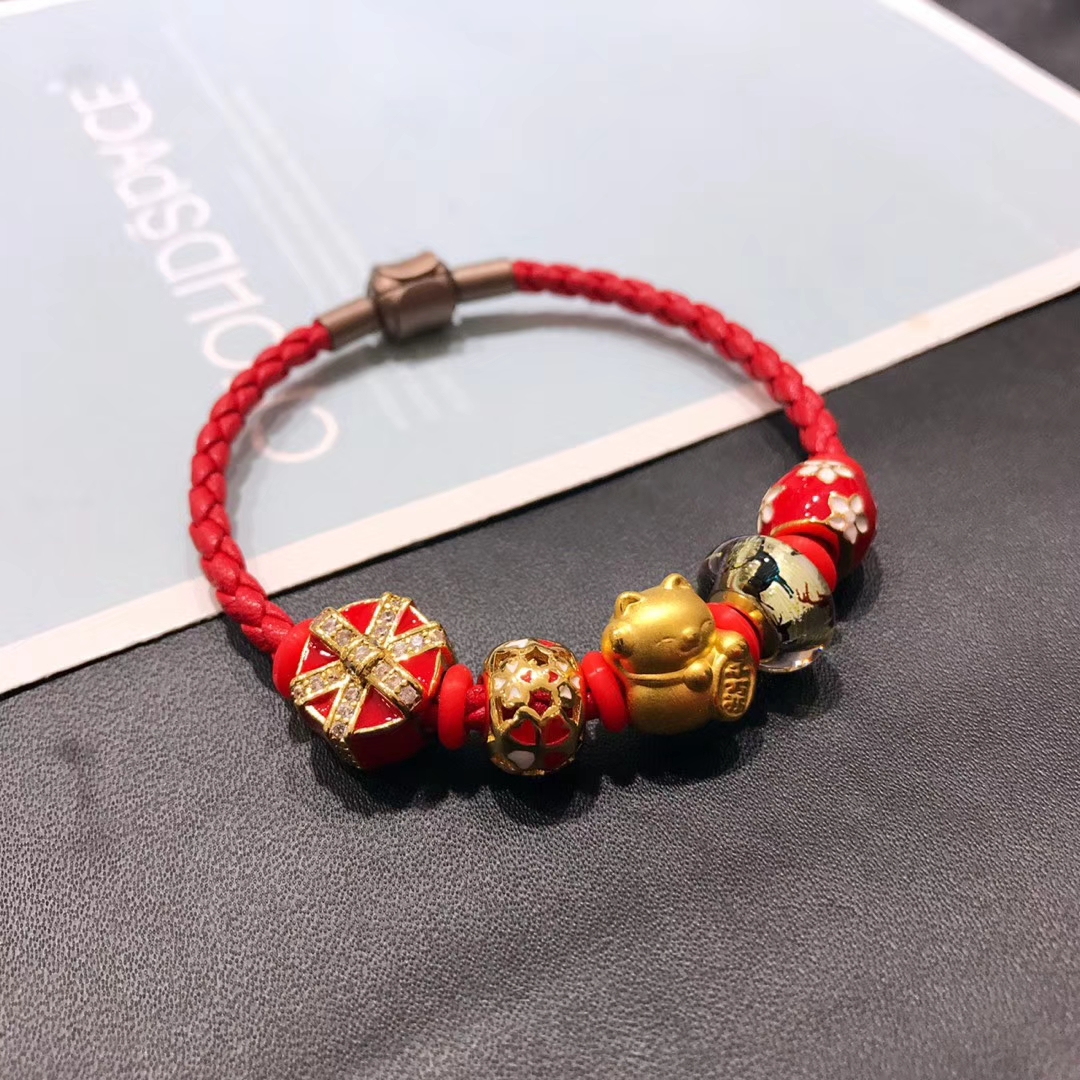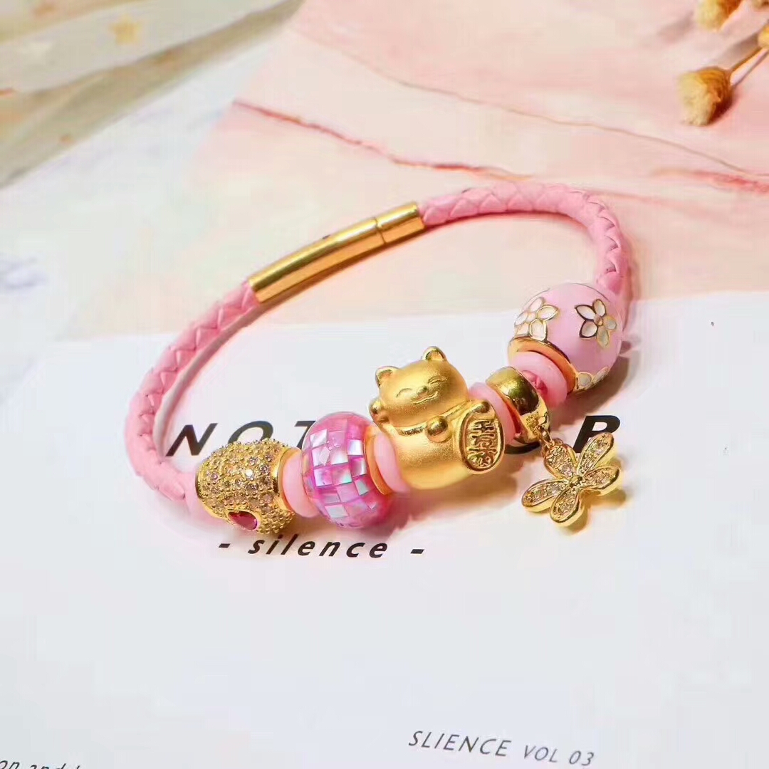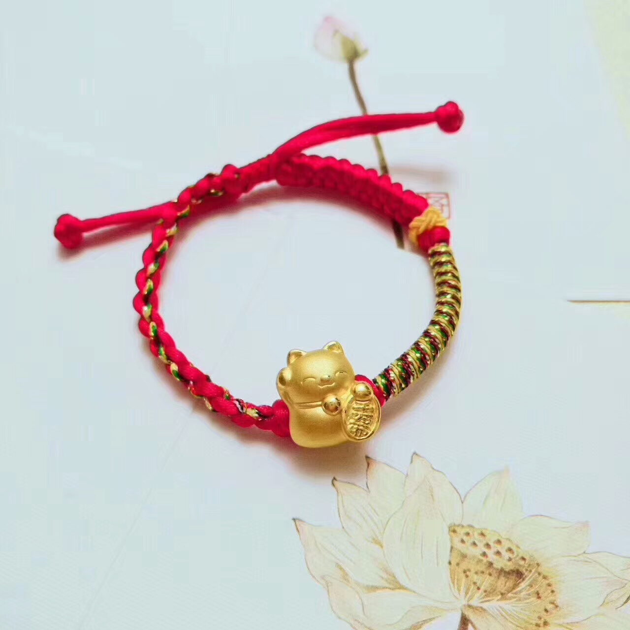 Pure Gold Lucky Cat Braided Hand Rope Pure Gold Lucky Cat Beaded Pink Hand Rope Pure Gold Lucky Cat Beaded Red Bracelet