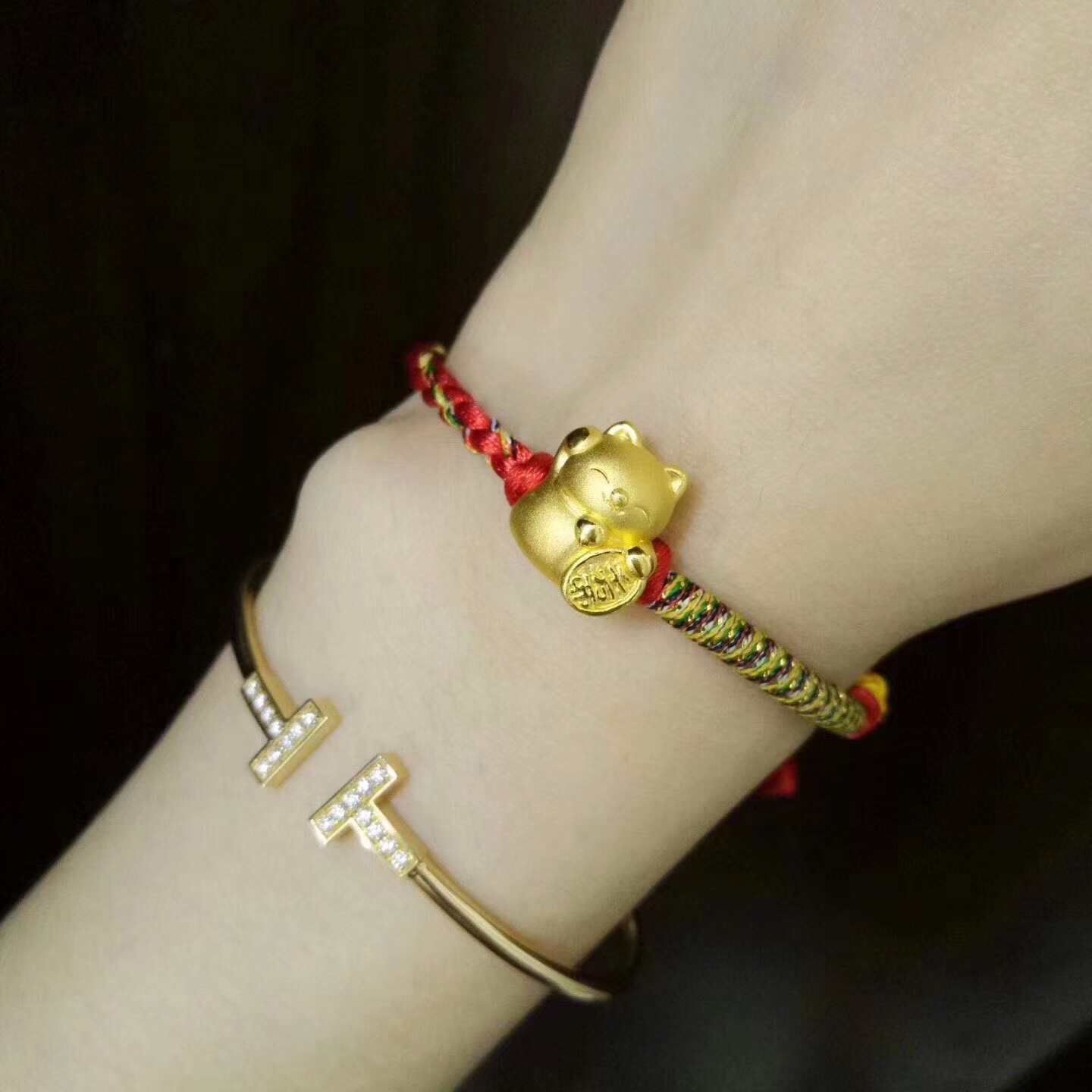 Gold hand 3d hard gold tens of millions of lucky cat bracelets 999 pure gold kitten bracelet support lettering