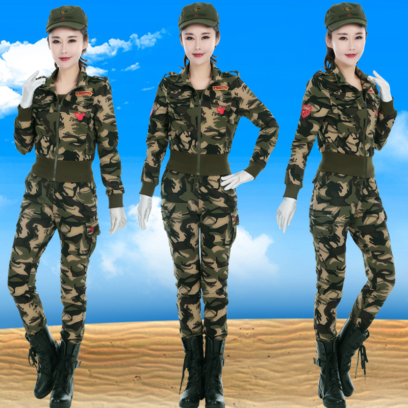 Camouflage suit women's three-piece set 2021 spring and autumn outdoor sportswear military uniform tourist uniform sailor dance square dance dress