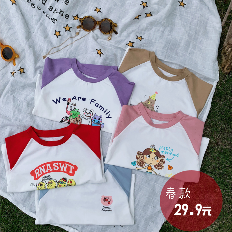 Hong Kong Beautiful Girl Girl Long Sleeve T-shirt Female Baby Cartoon Undershirt Pure Cotton Korean Version 2019 Spring Dress New Bi Entrance