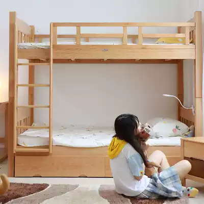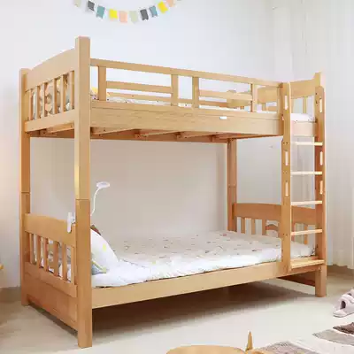 Full solid wood same width bed Beech upper and lower bed Double high and low bed same width 1 5 meters 1 2 meters 1 meter Space-saving customization