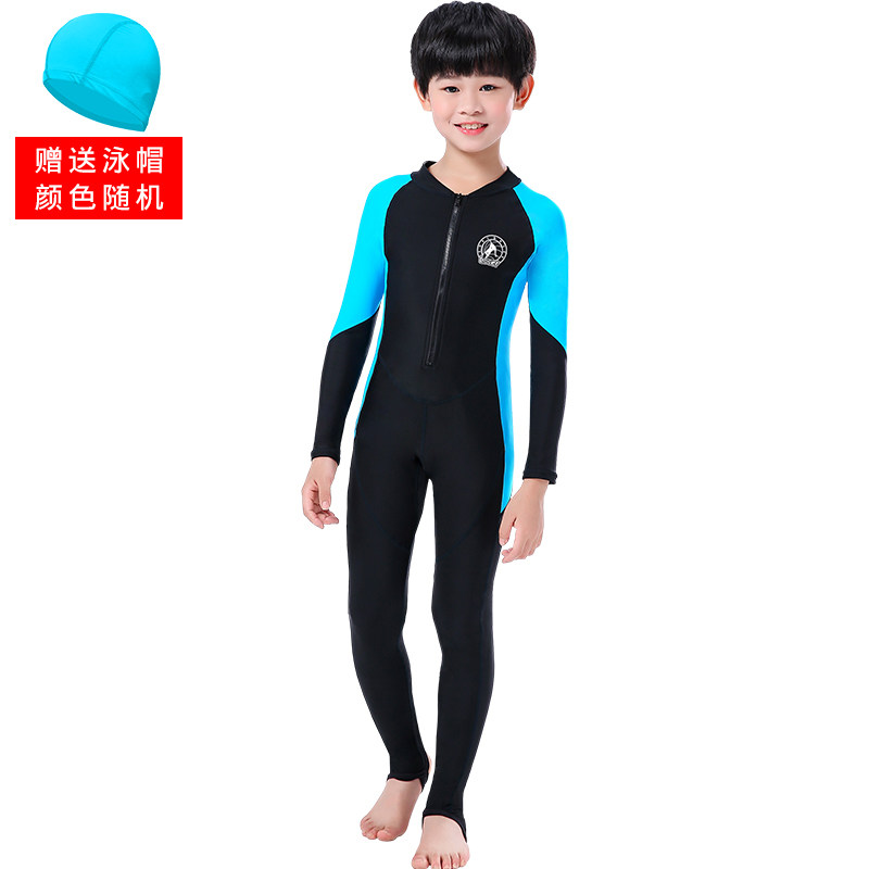 Children's swimsuit Boys one-piece middle and large children's long-sleeved swimsuit Men's hot spring warm sunscreen suit Student baby swimsuit