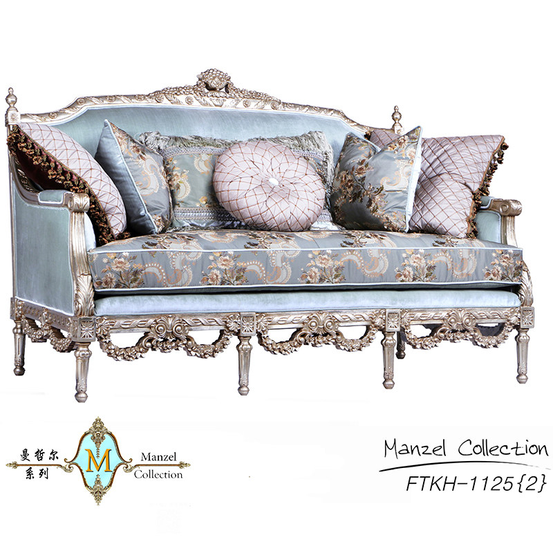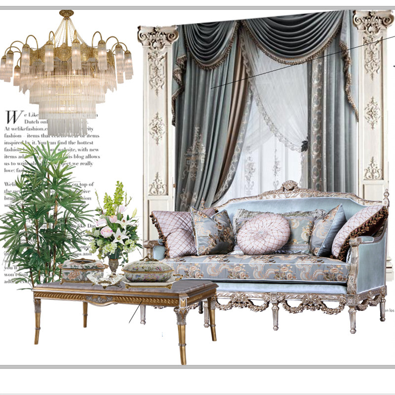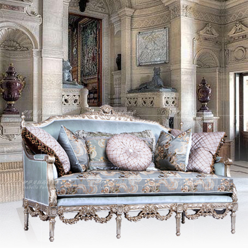 European-style log sofa villa French retro three-seater living room sofa birch luxury fabric classical furniture customization