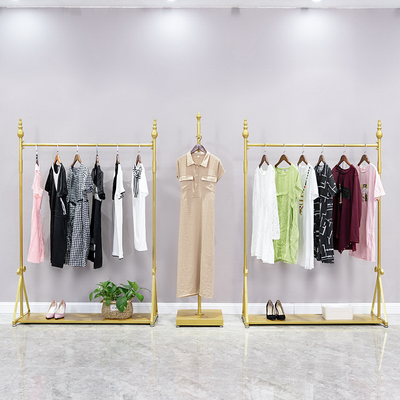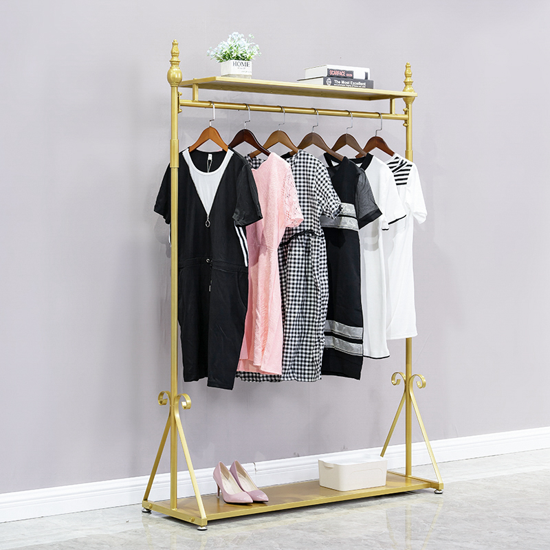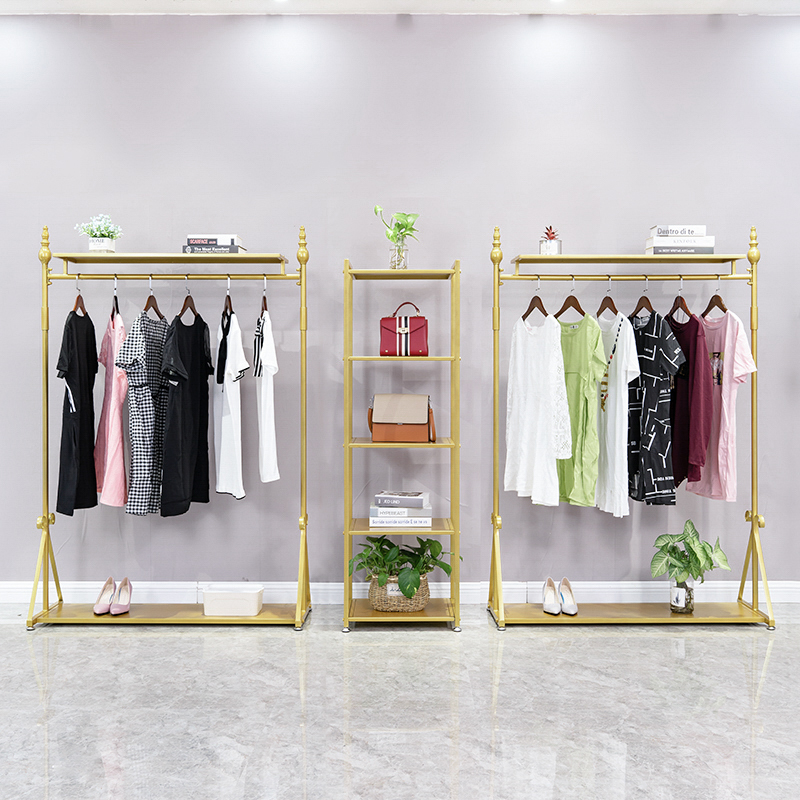 Simple and light luxury hanger Wrought iron gold clothing floor stand Women's store hanger personality creative clothing store display stand