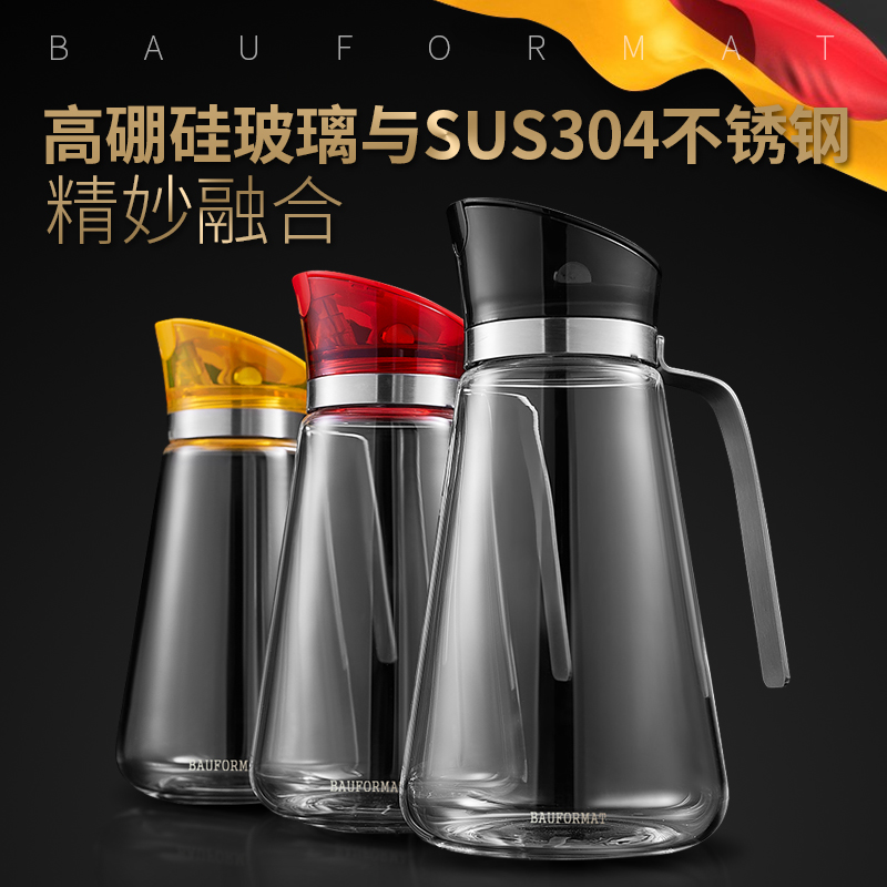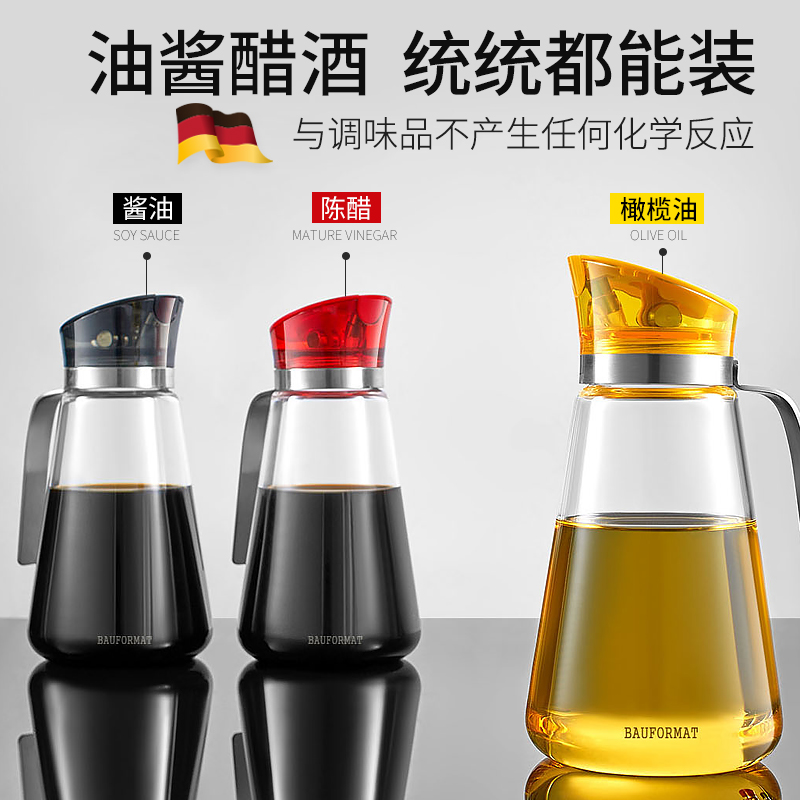 German bofman glass oil jug anti-leak kitchen oil bottle European style soy sauce bottle vinegar seasoning household oil tank vinegar pot-Taobao