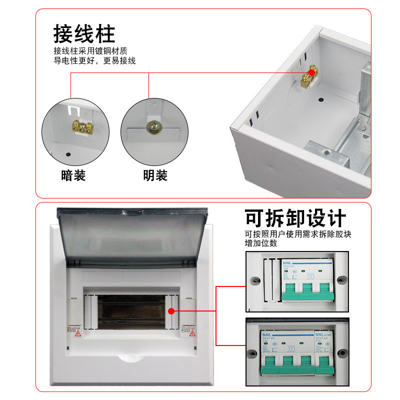 Min Concealed Clothes Universal Bathroom Air Conditioning 2-4 Air Switch Waterproof Case Distribution Box 2P Empty Open Box II Four Loops