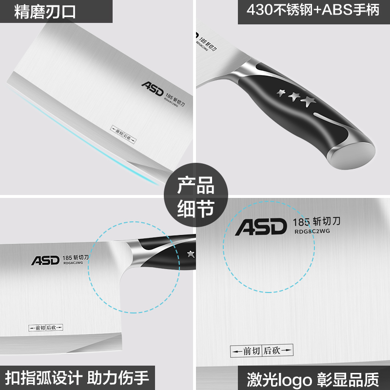 Ashda kitchen knife household stainless steel cutting set kitchen chef cutting knife sharp bone cutting meat