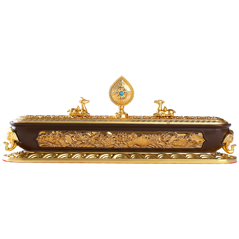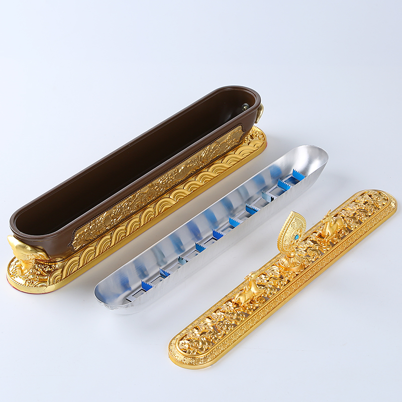 Nepalese line incense box aromatherapy furnace double deer auspicious elephant trunk god for Buddha home living room gilded Tibetan horizontal incense burner large