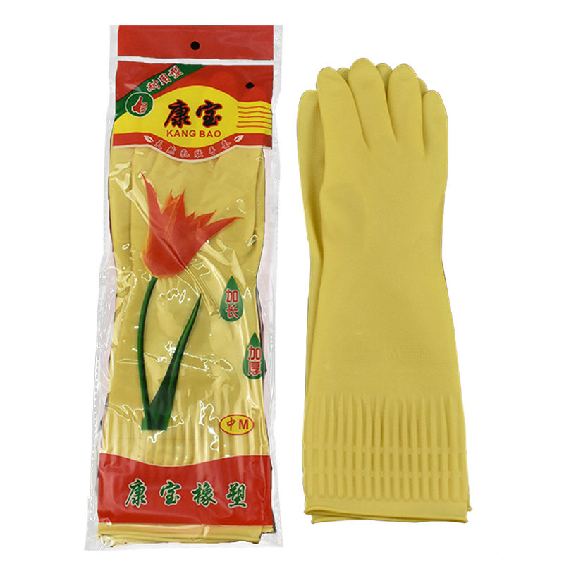 Kangbao lengthened and thickened natural latex gloves housework household dishwashing cleaning clothes anti-oil latex gloves