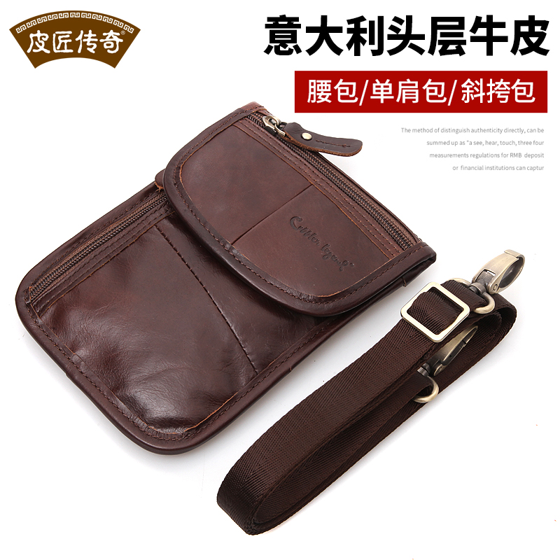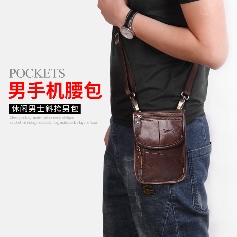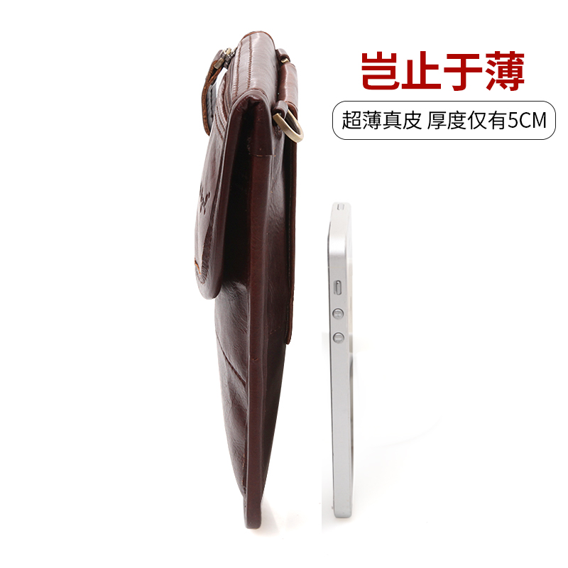 Multifunctional waist bag with belt for men's casual small bag thin leather vertical single shoulder bag messenger mobile phone bag