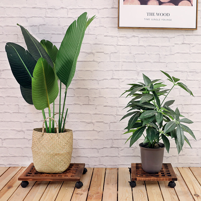 Wheeled flowerpot tray base movable universal wheel living room home solid wood with roller thickened anti-corrosion wood bottom