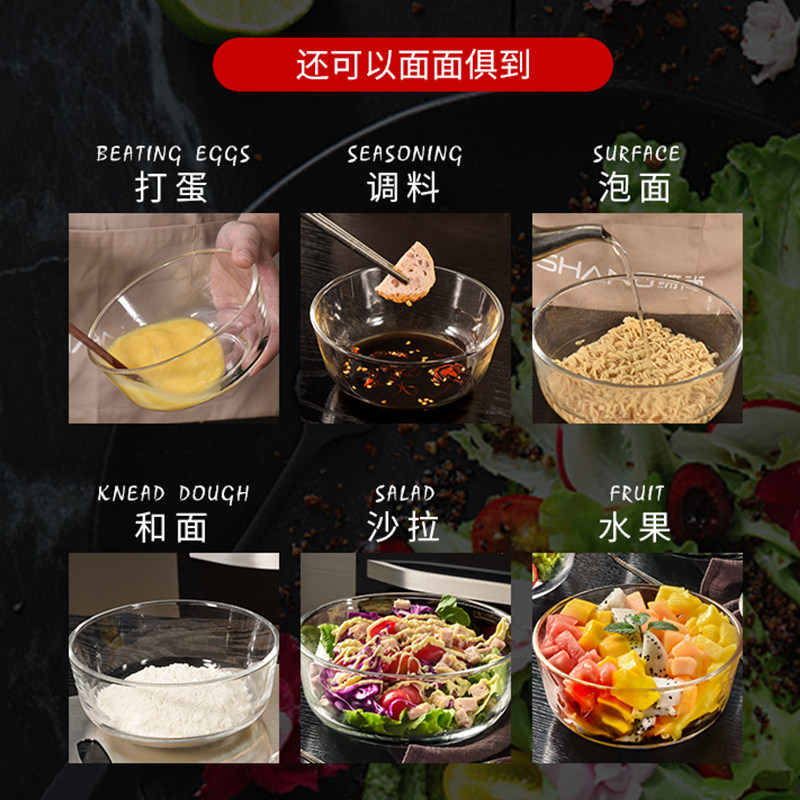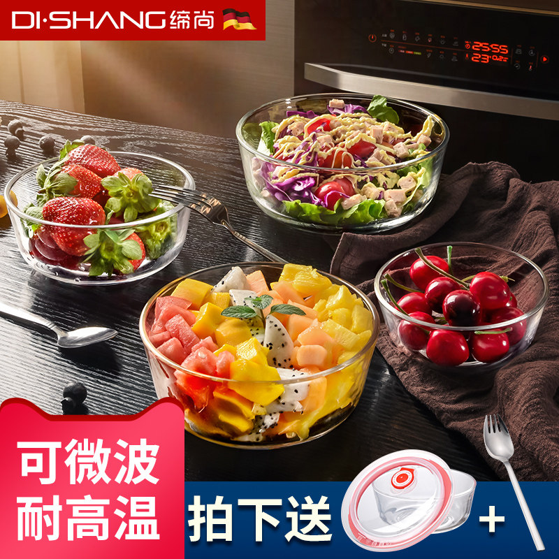Founder Glass Bowl with lid Home Foam Noodles Bowl Soup Bowl Large Rice Bowl Single Student Salad Bowl Heat Resistant Fruit Transparent-Taobao