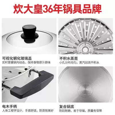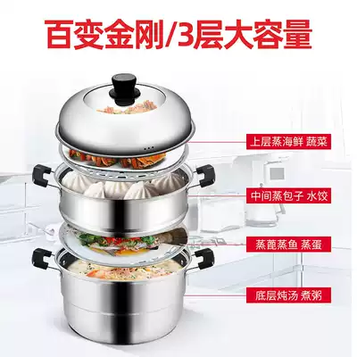 Cook emperor stainless steel steamer 3-layer household gas stove steamer steamer steamed steamed buns Soup pot integrated multi-layer