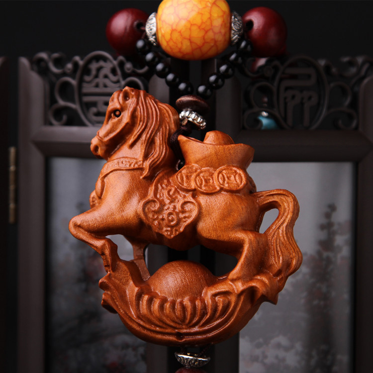 Hot sale boutique car pendants Immediately make a fortune high-end peachwood car interior supplies car pendant YMG03