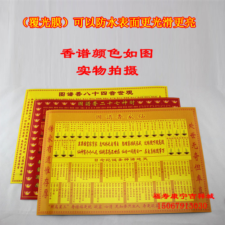 Guanyin Forty-Eight Incense Spectrum 1 Xianjia Incense Spectrum 1 Fortune God Seventy-Two Incense Spectrum 1 Sheet Three Kinds of Paper Incense Spectrum 1 Sheet Each Three Kinds of Paper Incense Spectrum 3 Pieces of Paper Incense Spectrum Each 10 Pieces of Guanyin Forty-Eight Incense Spectrum 5 Pieces of Immortal Family Incense Spectrum 5 Pieces of Fortune Seventy-Two Incense Spectrum 5 Sheets of Three Kinds of Paper Incense Spectrum 5 Sheets of 5 Pieces of Paper Incense Spectrum For a total of 15 sheets